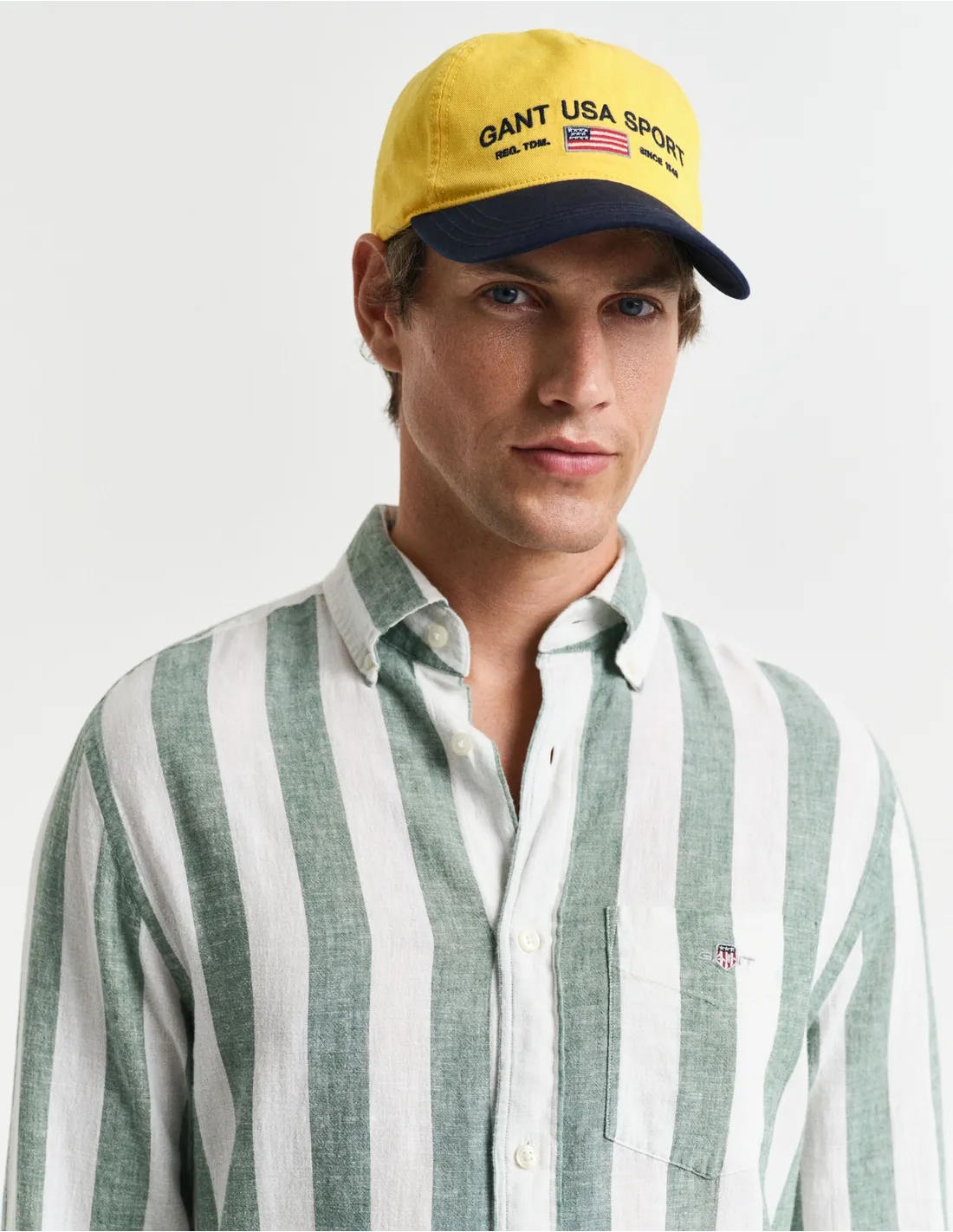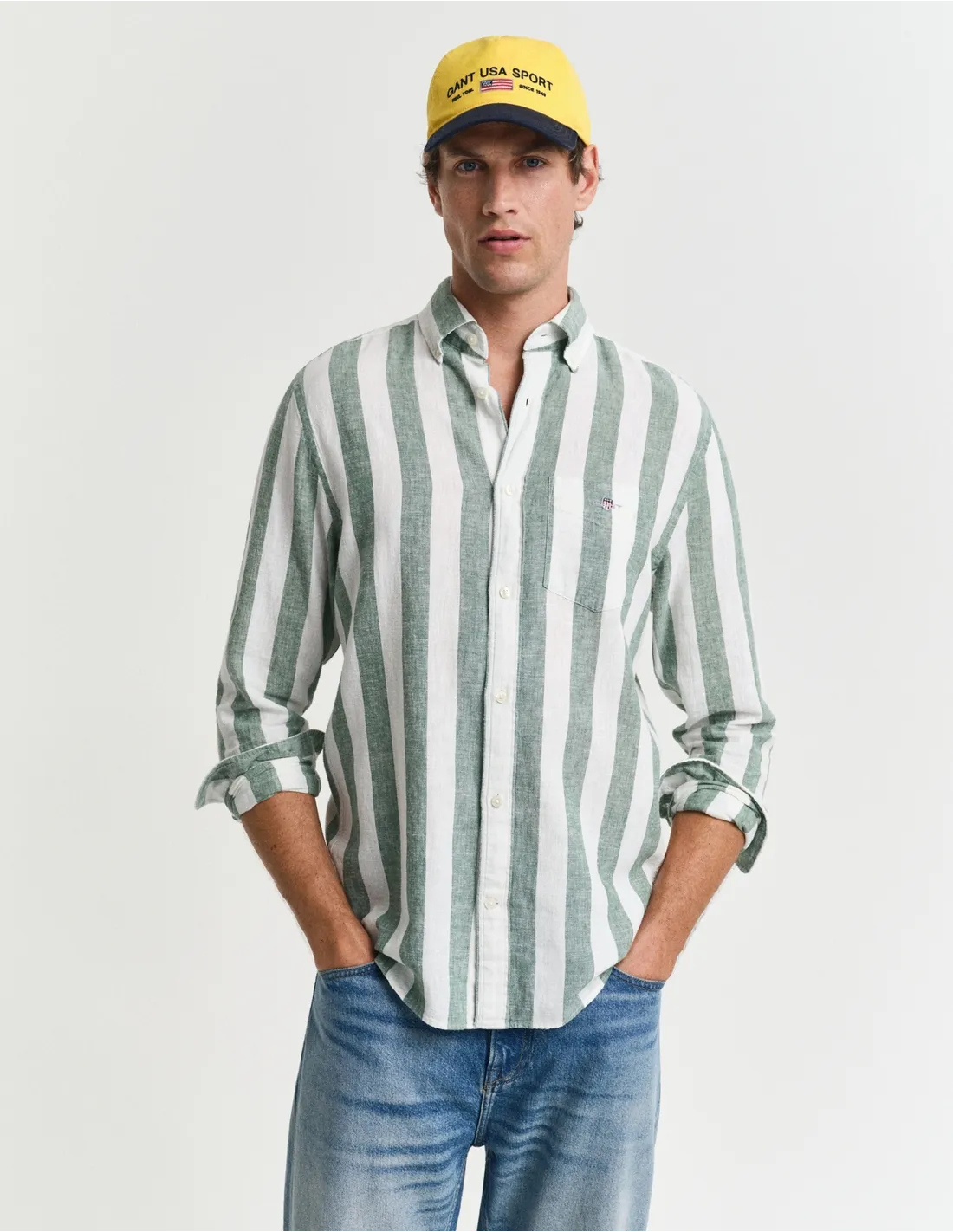 Camisa marca Gant de hombre Regular Fit de lino y algodón a rayas Woody Green