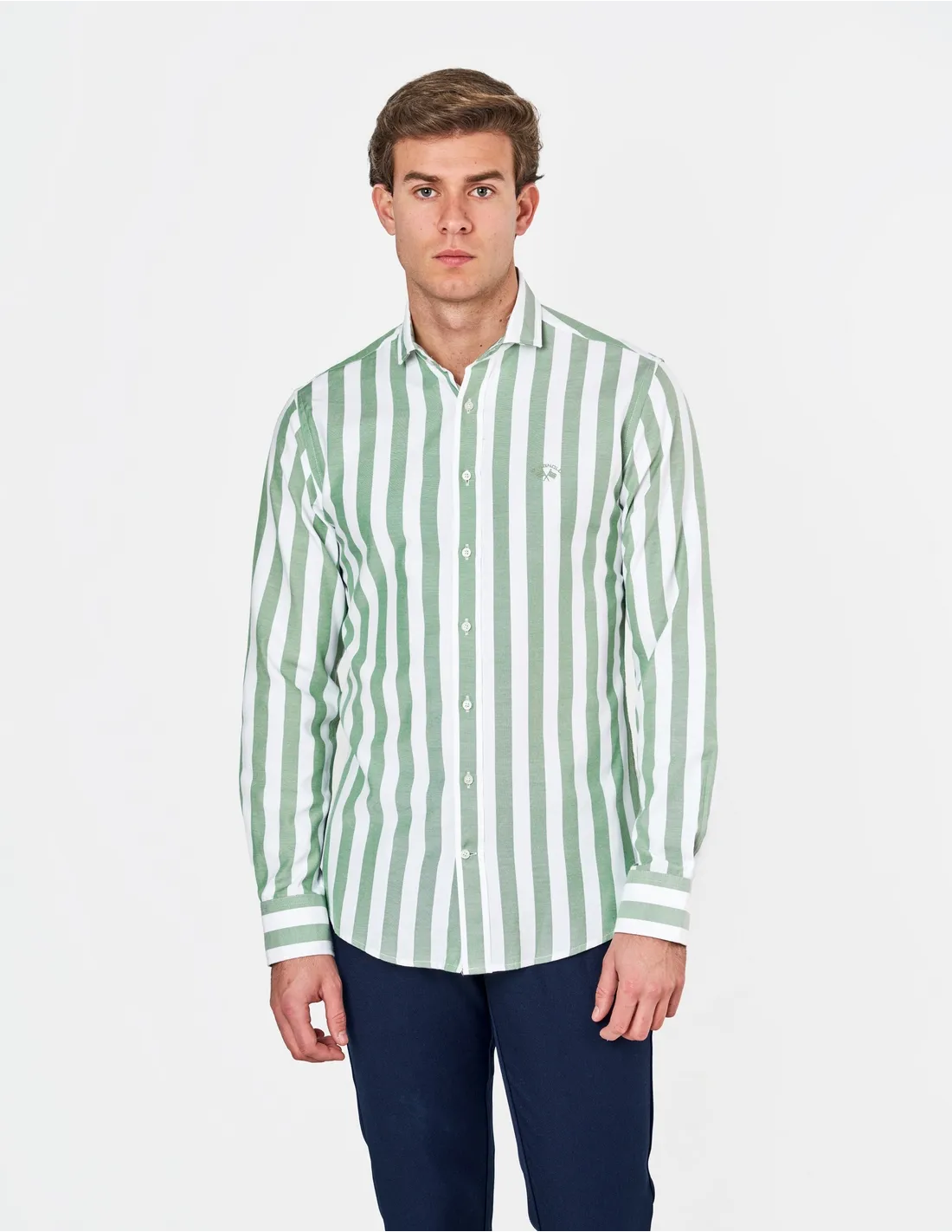 SPAGNOLO CAMISA OXFORD LISTAS VERDE
