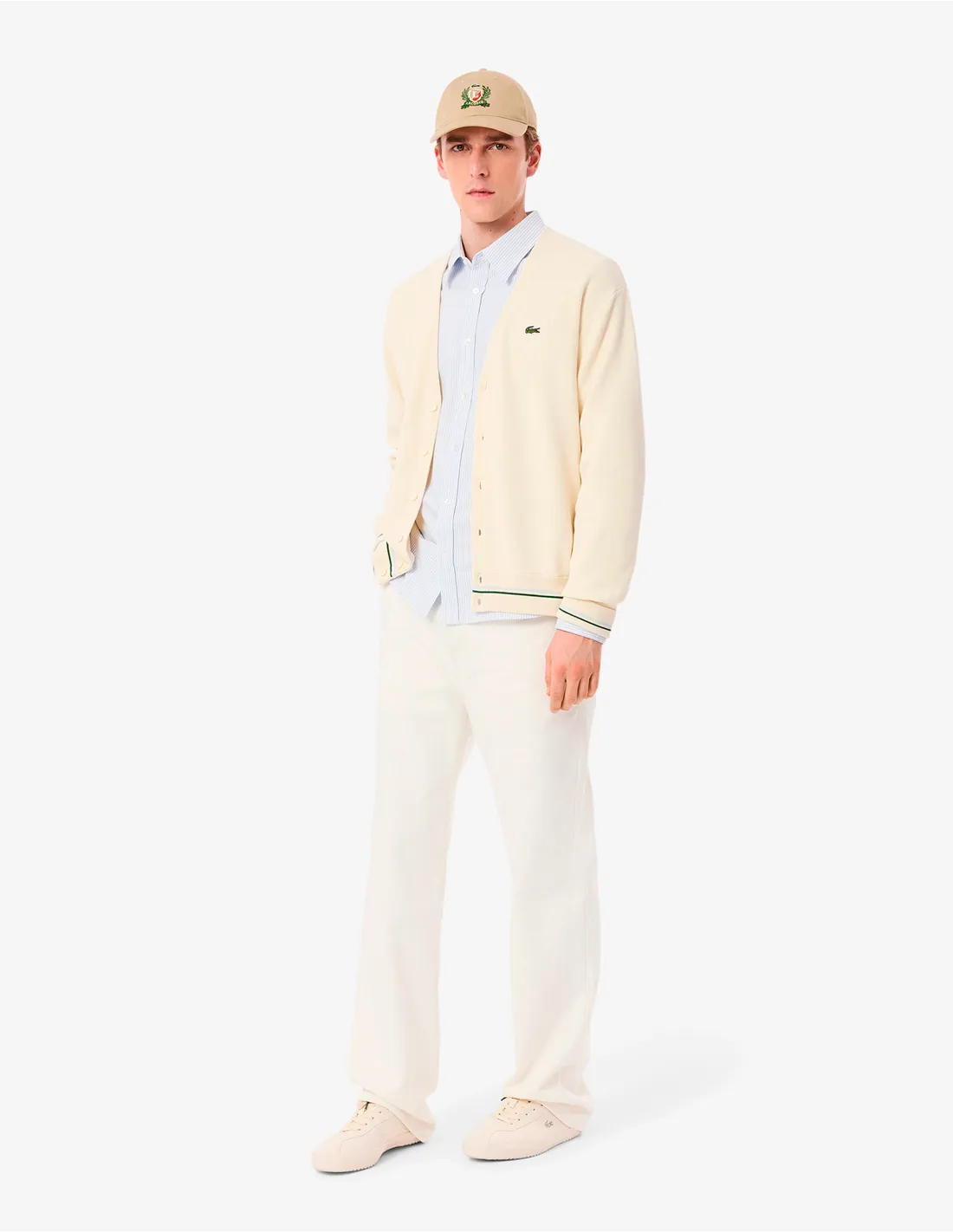 Chaqueta marca Lacoste de punto de algodón con rayas finas Beig/Laponie
