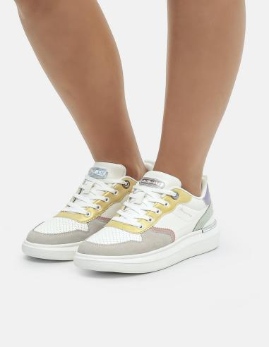 Deportivos Varese Mariamare para mujer, de estilo casual, están diseñados en color blanco roto con cordones al tono. Incluye paneles de distintos colores como el gris, naranja y verde. La trasera de la zapatilla está diseñada de color lila en acabado metálico. Su suela phylon agregará flexibilidad y ligereza a la pisada. Le darán un toque sporty chic a tus looks diarios.