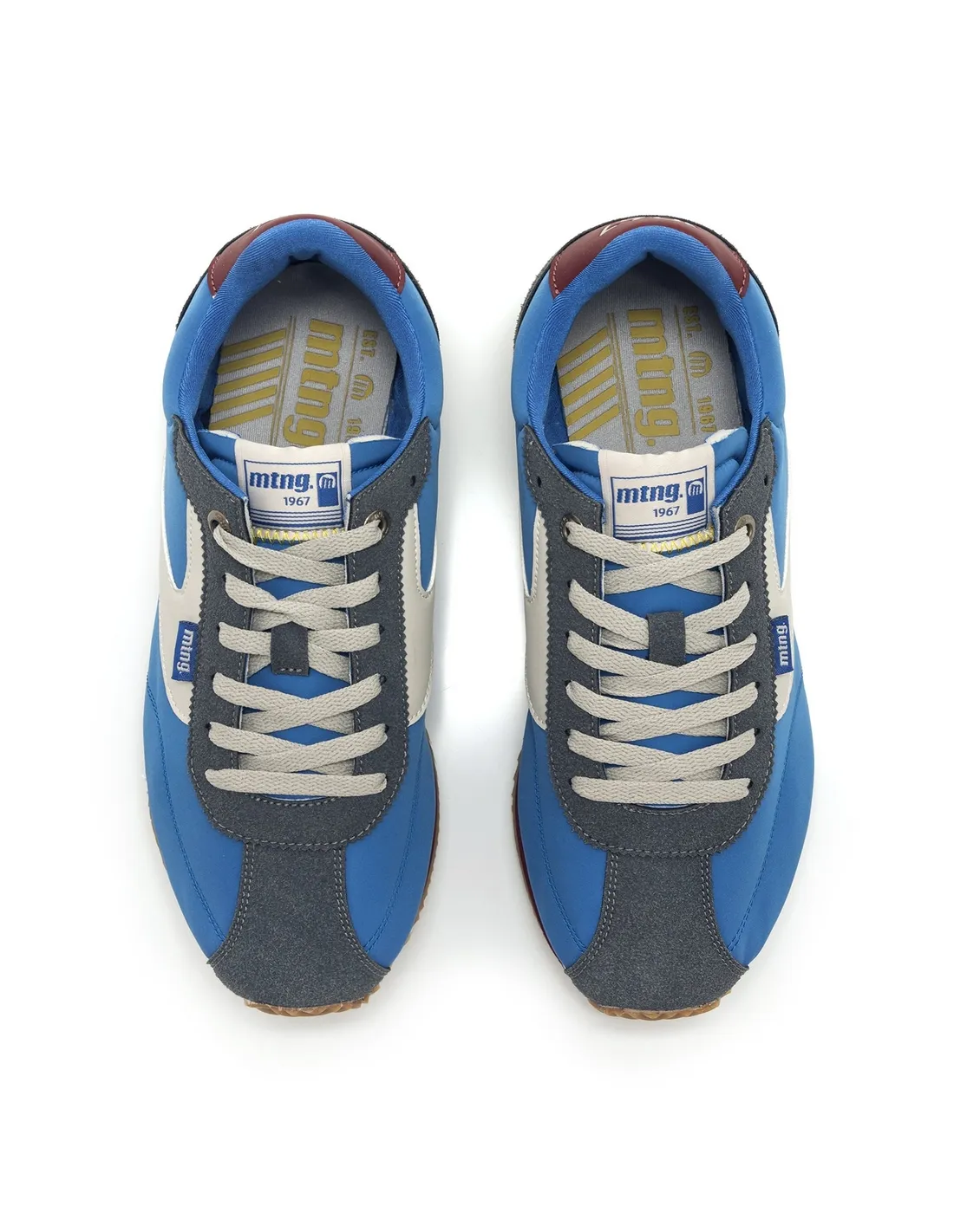 Zapatillas Omega de Mustang de color azul para hombre, modelo retro con toques actuales. Incorporan paneles en contraste de color gris oscuro y detalles en blanco que refuerzan su estética vintage. La suela dentada aporta buen agarre y comodidad en cada paso, mientras que el talón con inserción burdeos y el logo '1967' le dan un sello distintivo. Perfectas para uso diario, aportan estilo casual con un aire deportivo muy versátil. Incorporan una plantilla de 4 mm con tecnología Starfit, estas zapatillas ofrecen una pisada suave y cómoda. Su espuma Comfort Foam aporta un acolchado extra, ideal para disfrutar de un confort prolongado en cada uso.