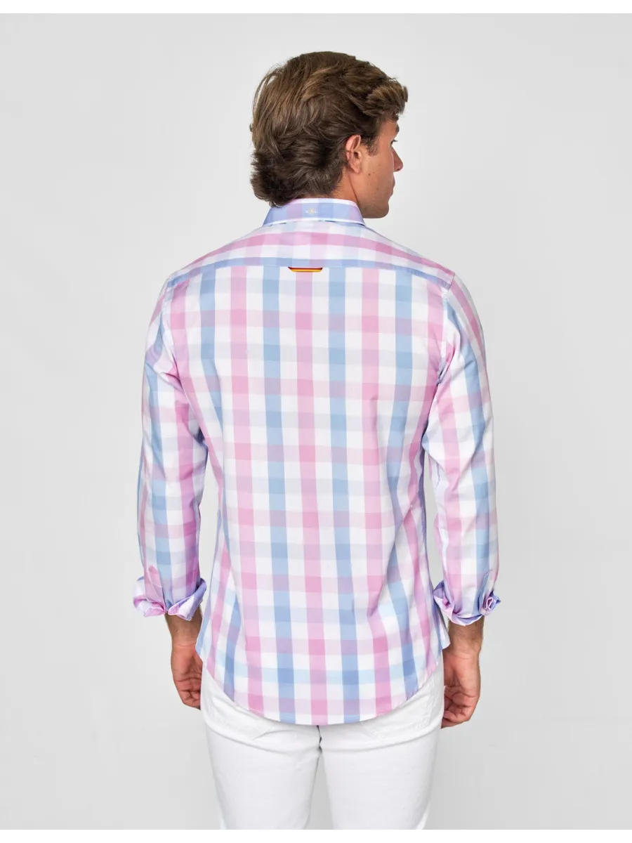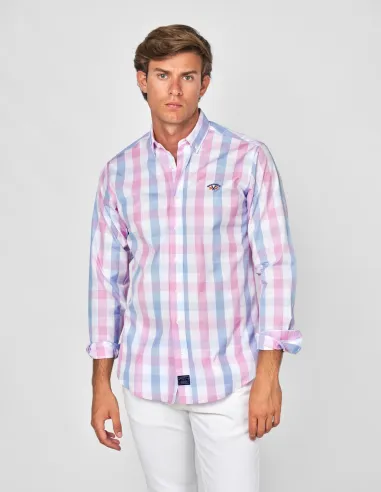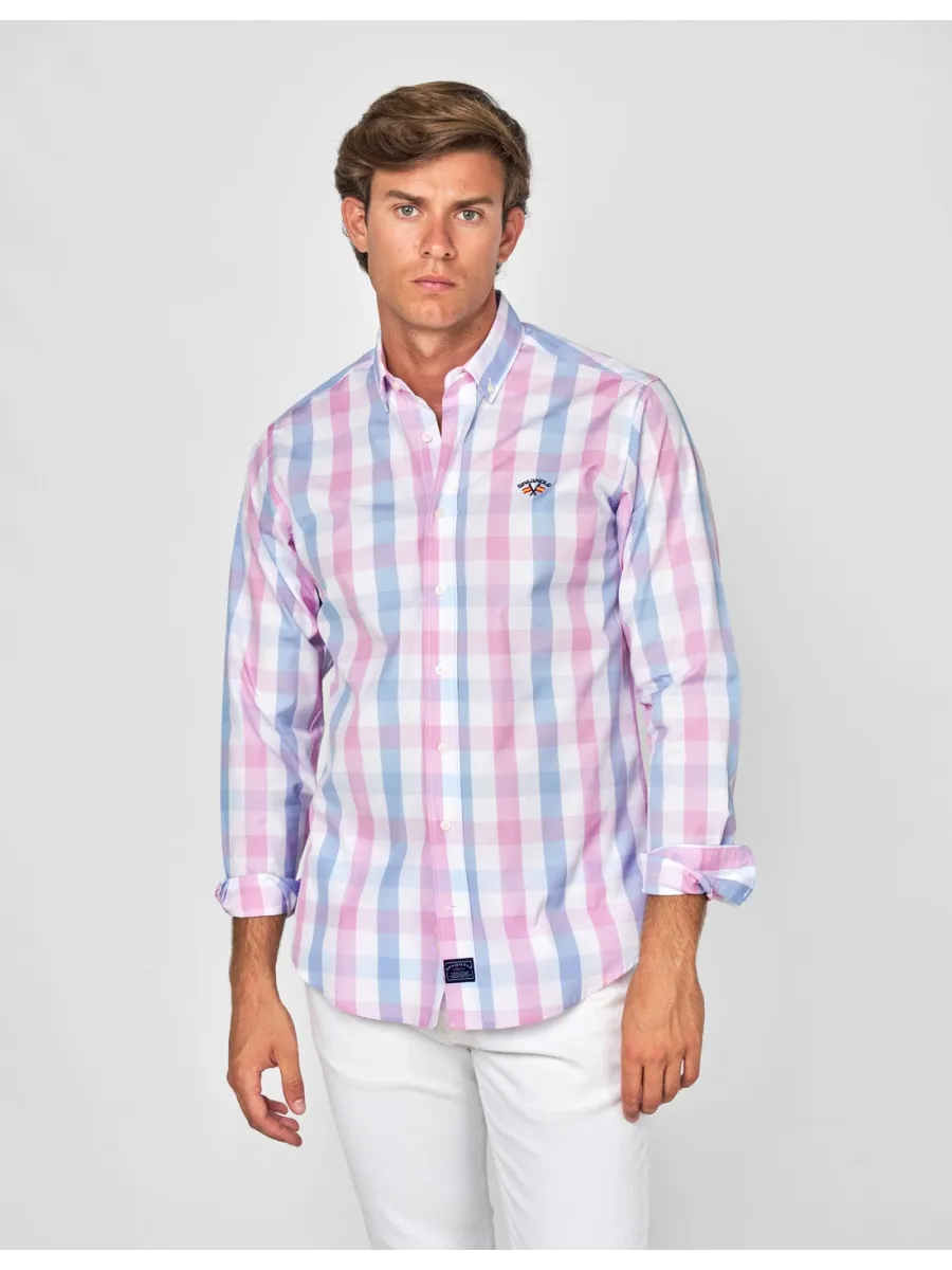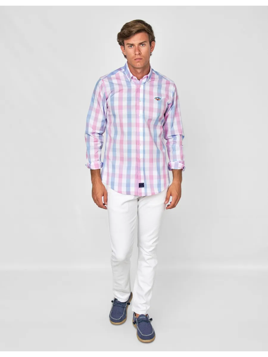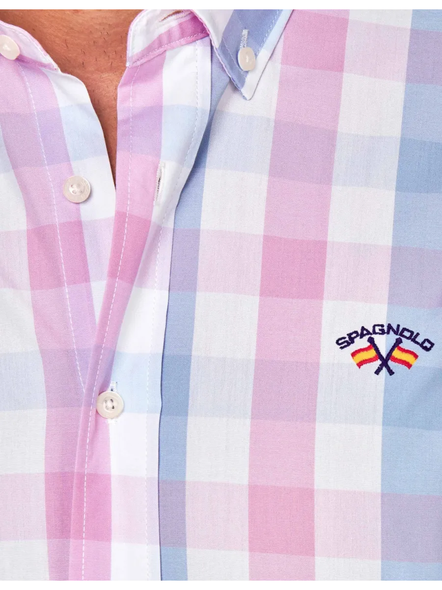 CAMISA SPAGNOLO POPELIN CUADRO AZUL FUCSIA