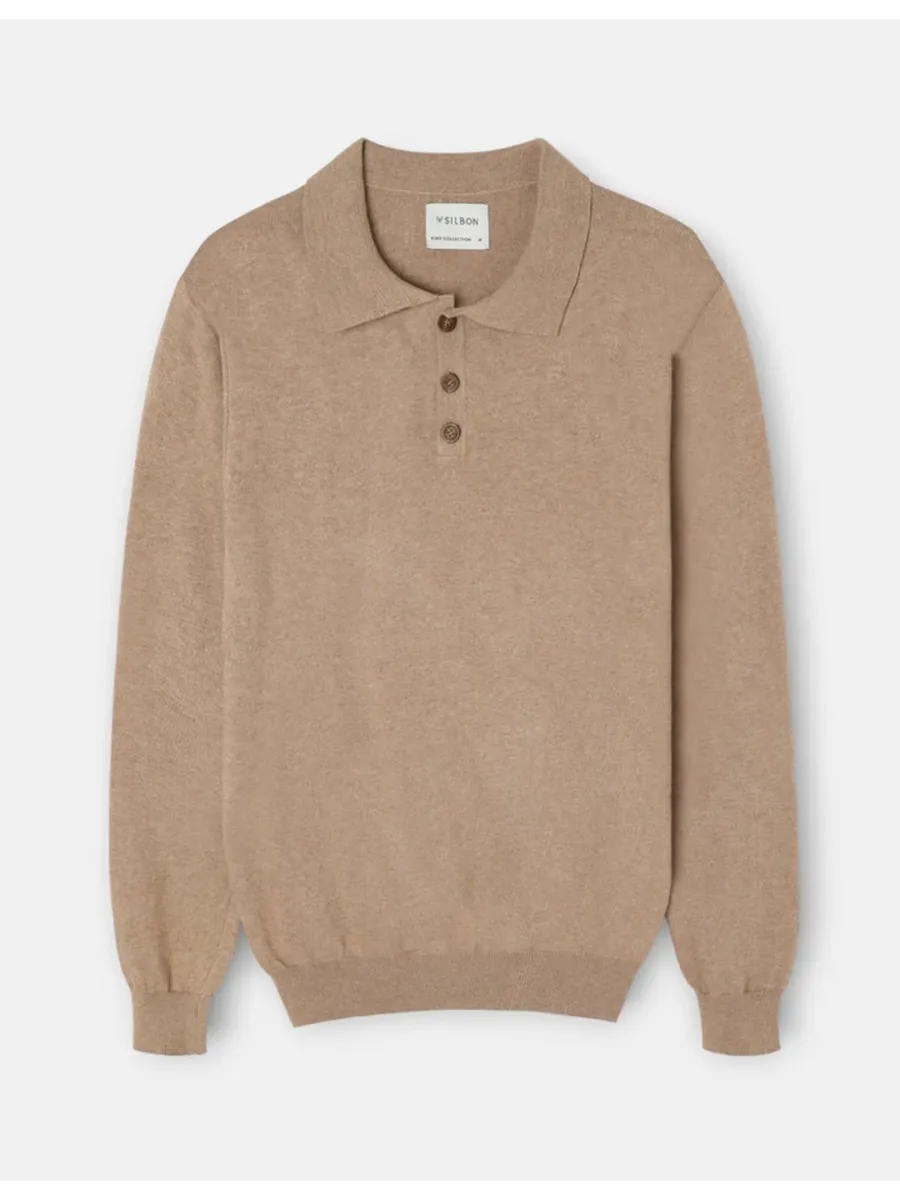 Jersey Silbon de cuello polo en color beige para hombre. Diseño clásico y elegante con el sello distintivo de Silbon, confeccionado con materiales de alta calidad para el máximo confort.