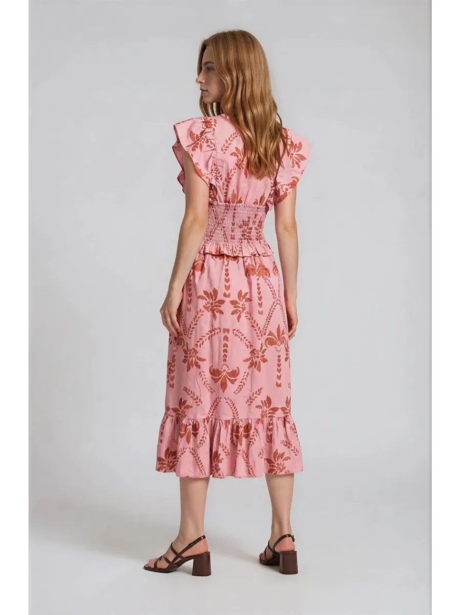 Vestido Tabita Estampado Geométrico con Panel Coral Mujer